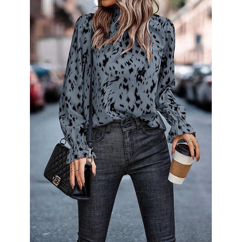 Why Choose Women's Shirt Blouse Fashion Print Petal Sleeve Long Sleeve Regular Tops High Neck Casual Pink Blue Brown Green Khaki Spring & Fall?