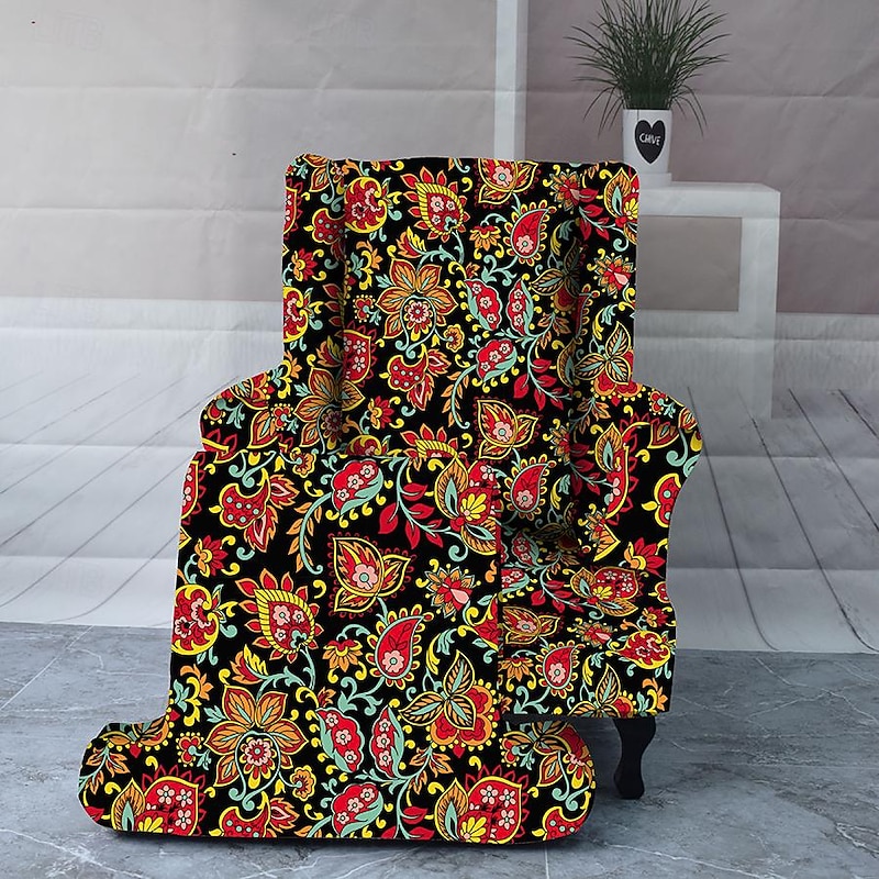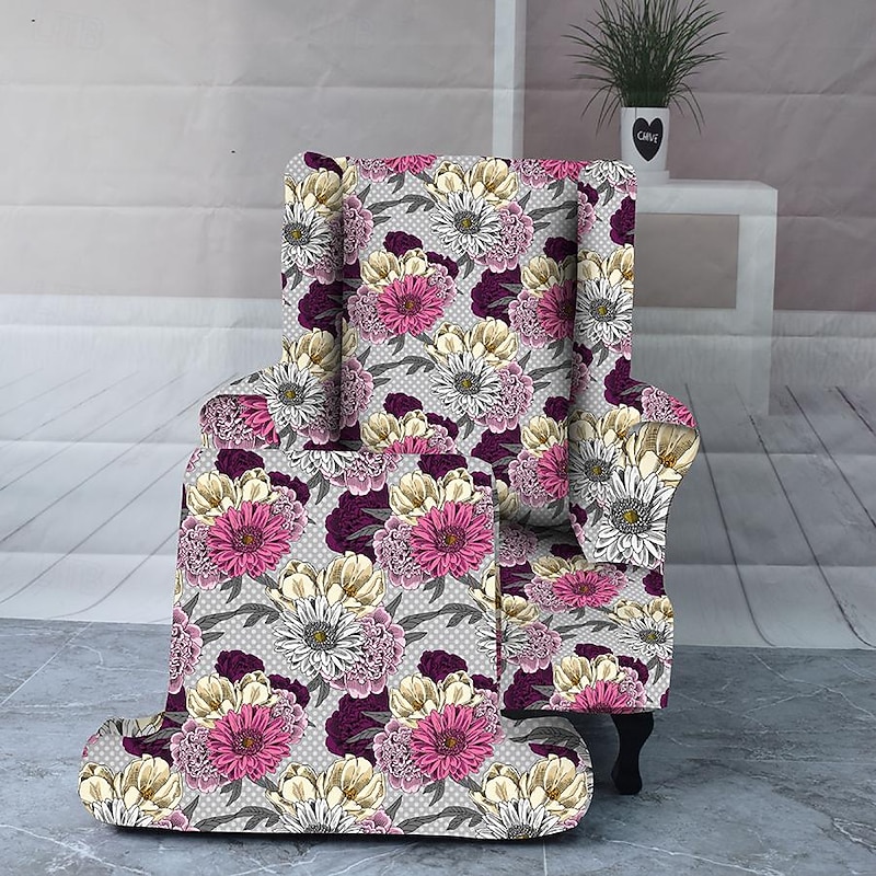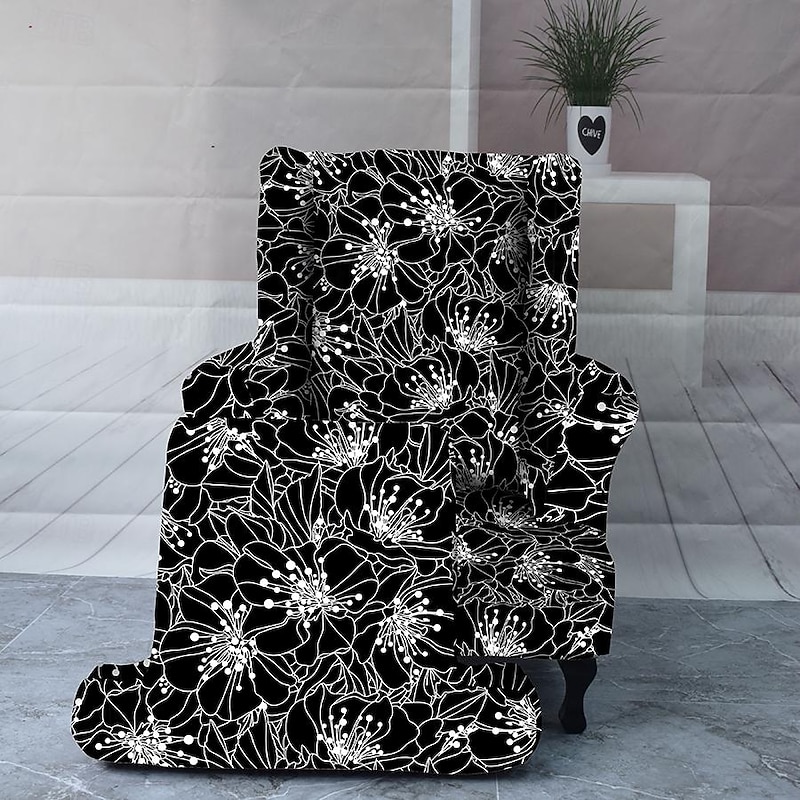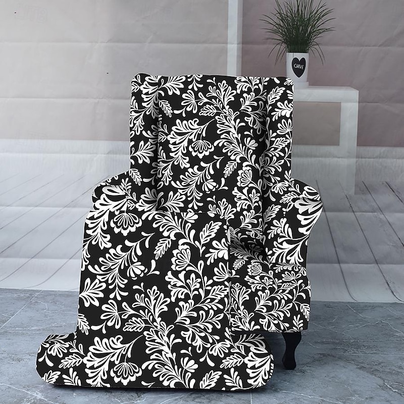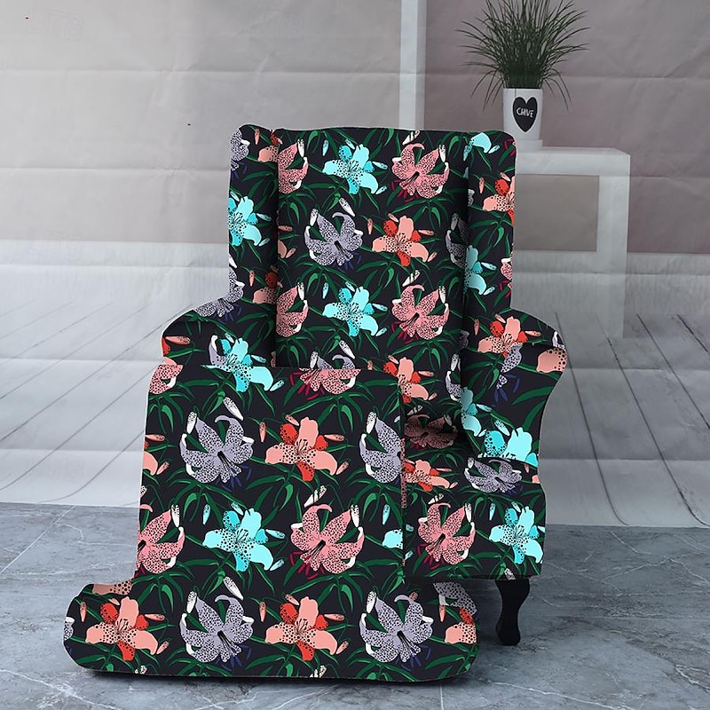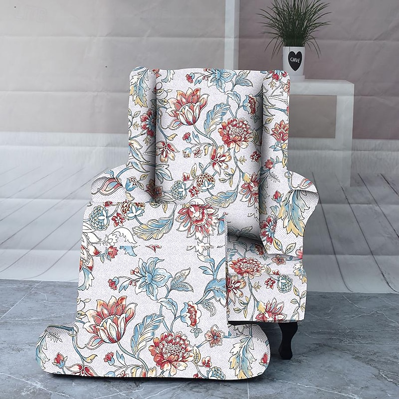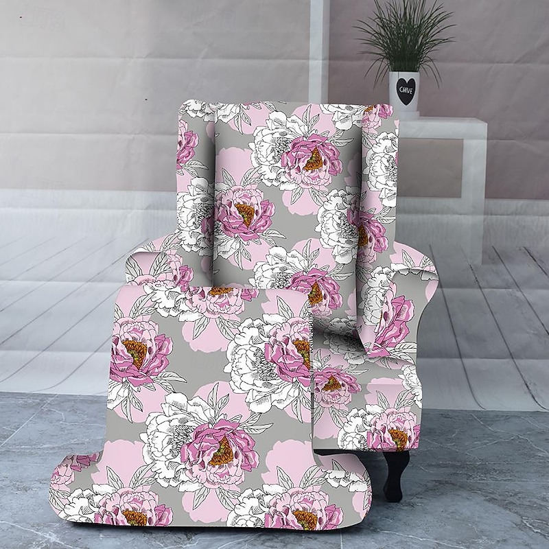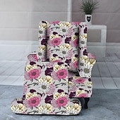 Armchair Slipcovers Stretch Spandex Wingback Chair Covers 2 Pcs Set ,Sofa Slipcover Floral Printed Furniture Protector Couch supple with Elastic Bottom