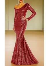 $144.99 - Red Black Stretch Sequined Mermaid / Trumpet Evening Gown Elegant Dress Formal Wedding Floor Length Long Sleeve One Shoulder with Glitter 2025 2025. Shop for cheap Mermaid Evening Dresses online? Buy at lightinthebox.com on sale today!