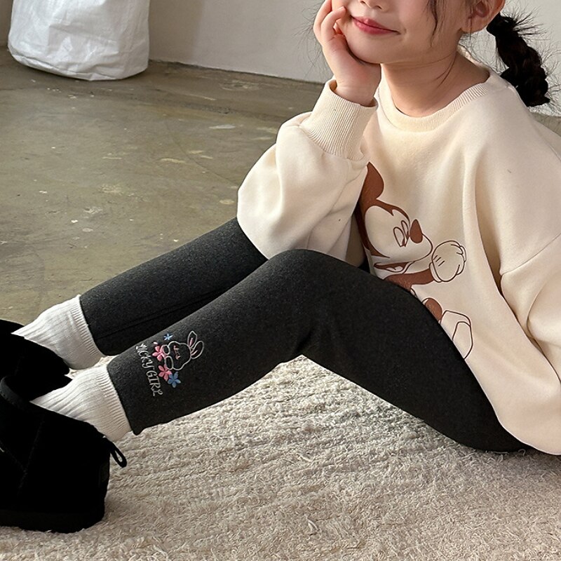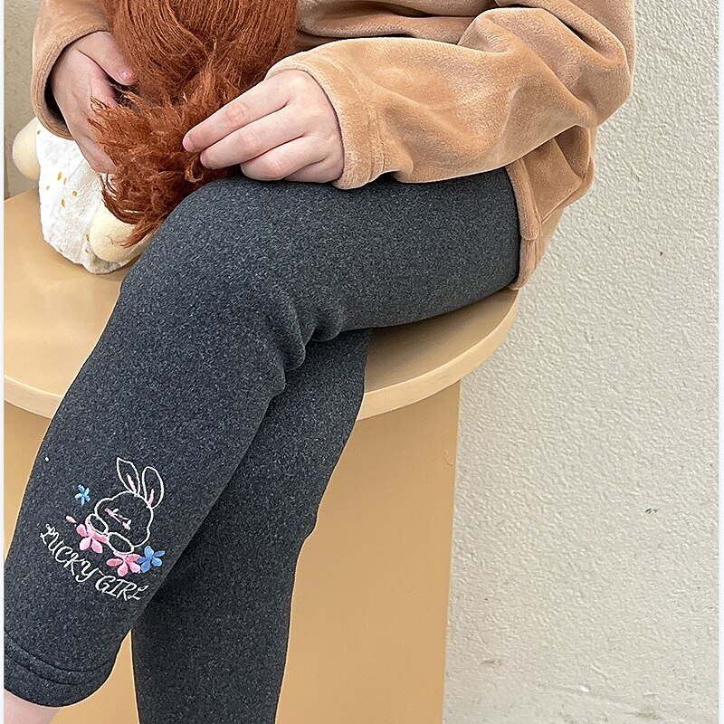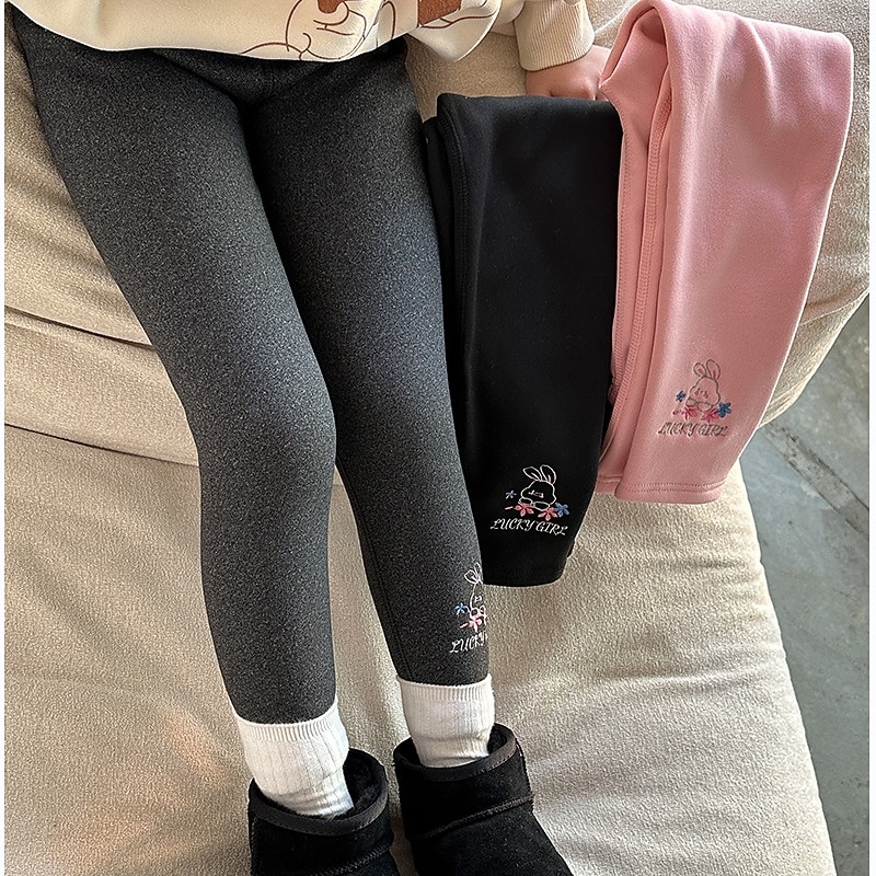 Why Choose Kids Girls' Leggings Solid Color Adorable Embroidered Outdoor 7-13 Years Spring Black Pink Light Grey?