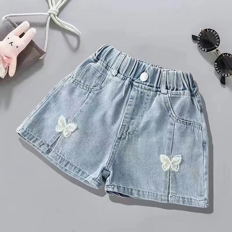 Why Choose Kids Girls' Shorts Butterfly Streetwear Patchwork School 4-12 Years Summer Blue Dusty Blue Light Grey?