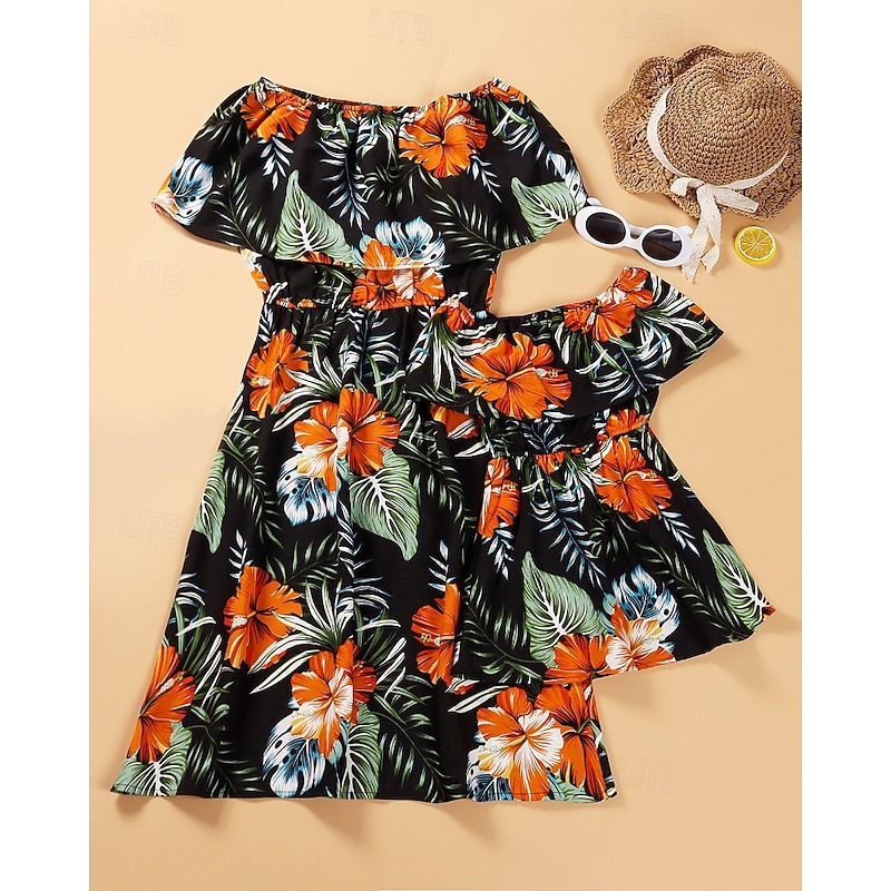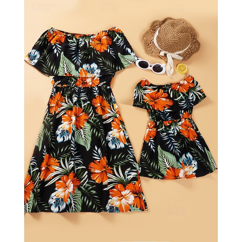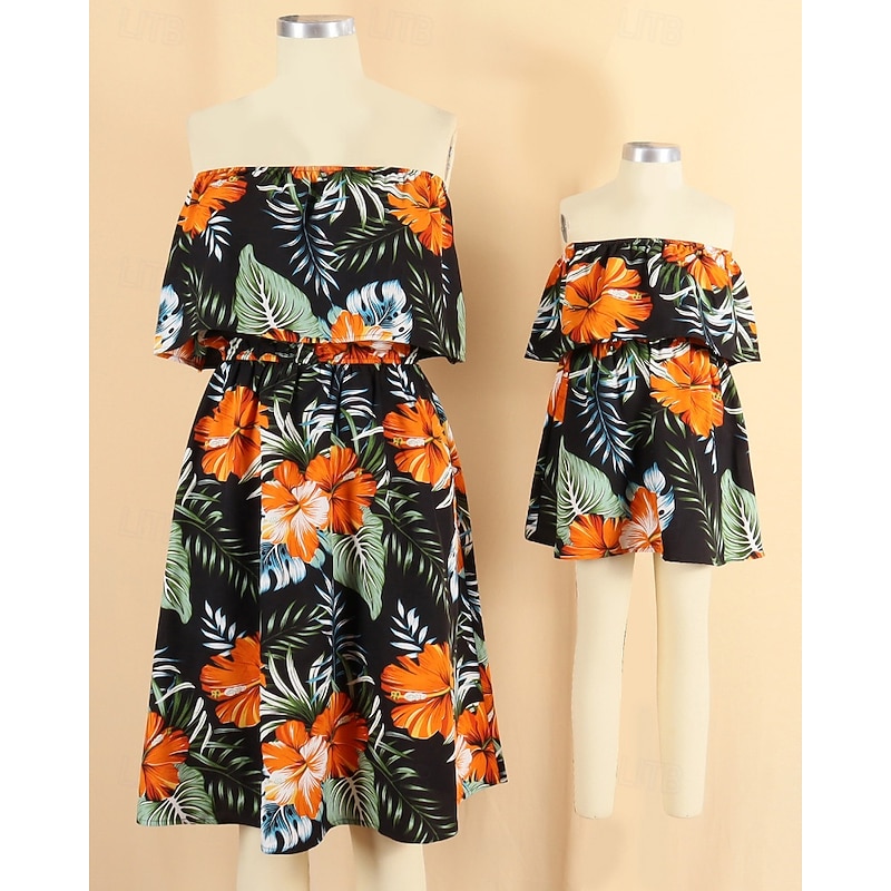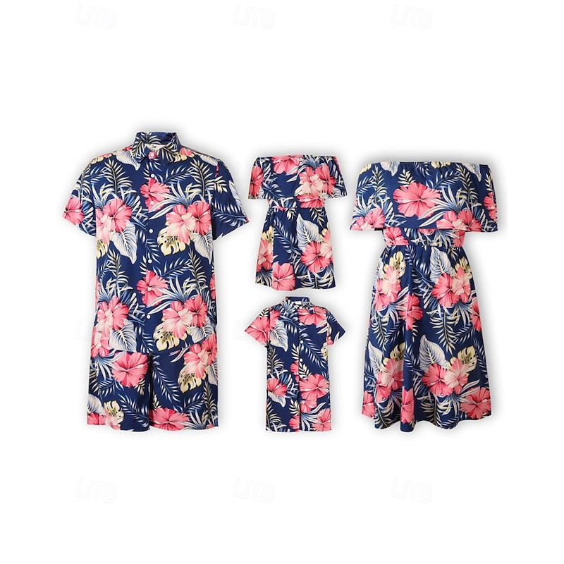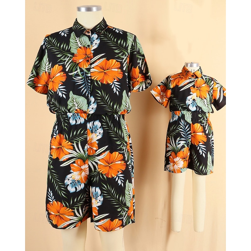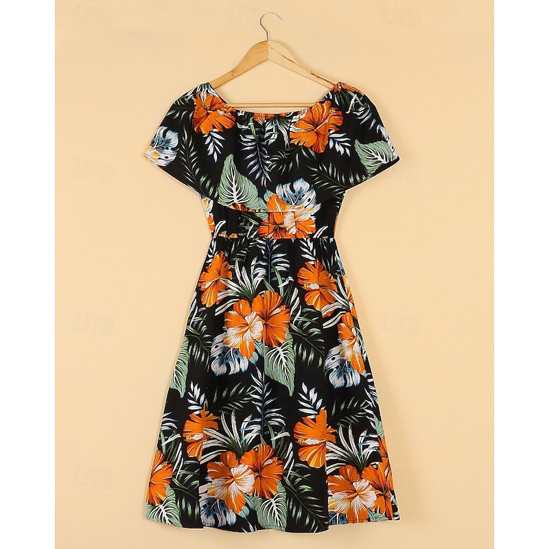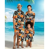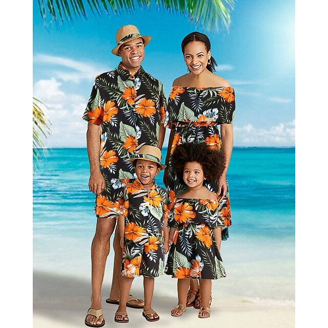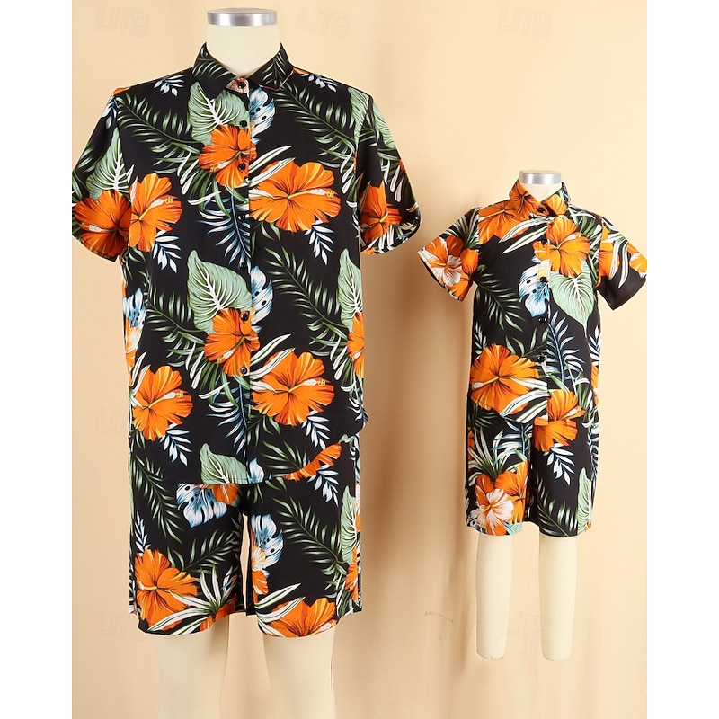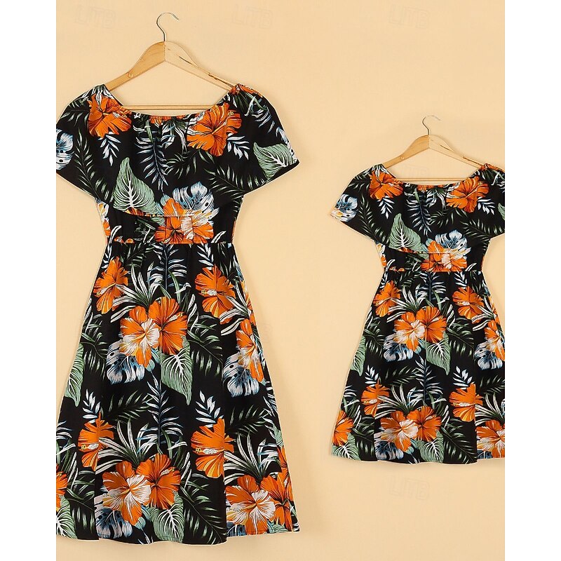 Why Choose Family Dresses Tops Bottom Floral Street Print Blue Orange Short Sleeve Active Matching Outfits?
