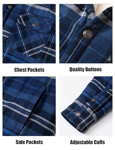 CRYSULLY Men's Flannel Jackets Cotton Lightweight Fleece Lined Plaid Shirts Winter gentle snug Button Coats with Hood for Men