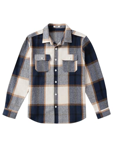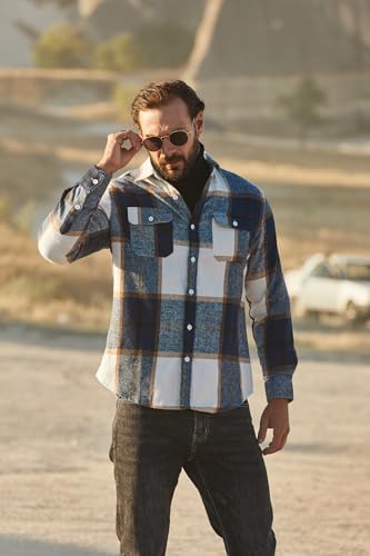 COOFANDY Mens Flannel Shirts Long Sleeve Plaid Shirt Jacket Button Down Shirt with Pockets