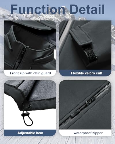 More information about Men's velvety Shell Jacket Waterproof Military Tactical Coat Winter Fleece Lined Rain Jacket with Detachable Hood