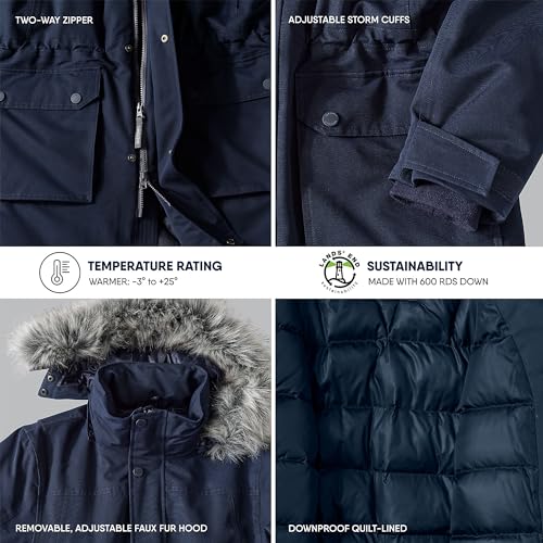 Fabric type: 100% NylonCare instructions: Machine WashOrigin: ImportedQuality Materials: Shell is 100% waterproof nylon. Lining is 100% nylon. Insulation is 80% goose down 20% feathers. Hood & body is 100% polyester. Faux fur hood trim is 86% acrylic/14% polyester.Stay Toasty: Our lined puffer coat with 600 fill power down provides thermal warmth in polar-like temps. The quilted lining keeps goose down in place. Sealed seams on the shell keep elements out.Smart Details: We've added an adjustable insulated hood with a removable faux fur trim to protect your face. Double cuff construction keeps snow and slush from getting in and it has multiple pockets.Everyday Essential: Designed with extreme weather and comfort in mind this lightweight menβs winter jacket is perfect for the ski slopes. It's also very packable making it a must for traveling.A Gift He'll Love: Give him this hooded puffer parka and he'll use it all winter and spring. Ideal for commuting walks in the woods playing with the kids and more. Easily layers over his clothes. Perfect for everyday use. superior materials and excellent craftsmanship ensure long-lasting durability.