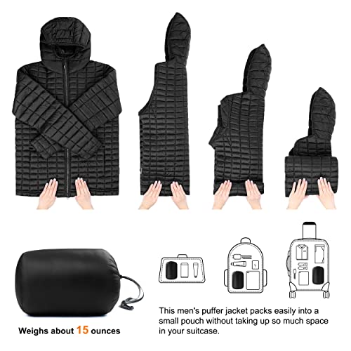 33,000ft Men's Thermolite Packable Hooded Quilted Puffer Jacket, Lightweight comfortable Puffy Insulated Winter Coat