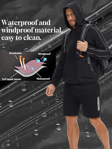 Men Rain Jackets Long Sleeves Zipper Raincoat Lightweight Waterproof with Hood Slim Fit Rain Coat for Outdoor Sports