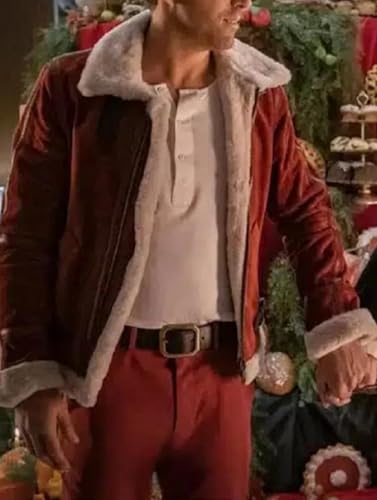 trending ! Men's Spirited Ryan Reynolds Maroon Leather Faux Fur Jacket Santa Coat Maroon Suede Leather Jacket
