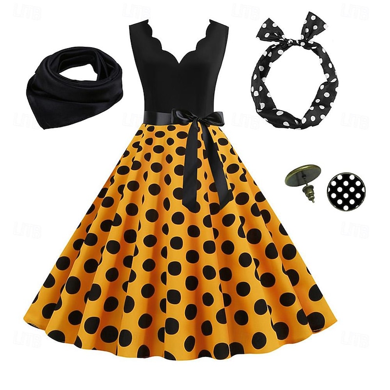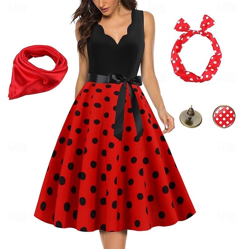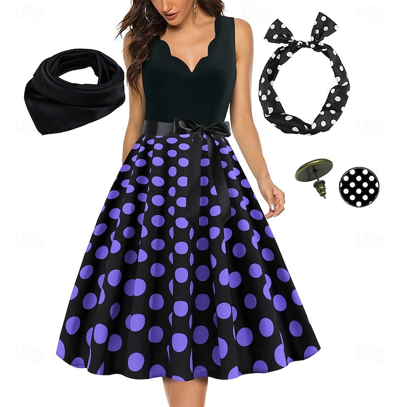 $33.99 - Women's A-Line Rockabilly Dress Polka Dots Swing Dress Flare Dress with Accessories Set 1950s Grease Outfits 60s Retro Vintage with Headband Scarf Earrings For Vintage Swing Party Dress 2025. Shop for cheap Outfits online? Buy at lightinthebox.com on sale today!