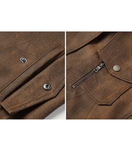 Fabric type: 100% PolyesterCare instructions: Hand Wash OnlyOrigin: ImportedCrafted with solid PU leather and breathable polyester lining, this lightweight men's leather jacket delivers comfort for daily wear or formal events.Features a slim silhouette with precise sizing (check our chart), contouring perfectly as a sport coat or casual leather jacket men love for all-day wear.Functional men's leather jacket: Equipped with smooth button closures and practical pockets, this jacket-inspired design blends utility with timeless sophistication.Reinforced seams and weather-resistant build ensure year-round use, transitioning effortlessly from city streets to special occasions.Style it from road trips to meetings—pair with jeans or dress pants. Our biker jacket hybrid offers unmatched comfort in men's leather jacket collections. Perfect for everyday use. superior materials and excellent craftsmanship ensure long-lasting durability.