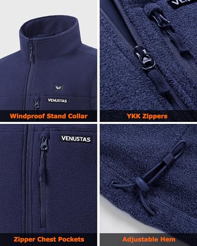 Venustas Men's Heated Fleece Vest with 6 Heating Zones, Lightweight Recycled Electric Fleece Vest