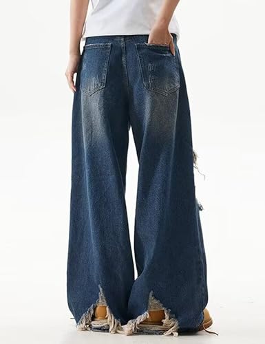 More information about Y2k Baggy Denim Pants Hip Hip Ripped Jeans Wide Leg Jeans Grunge Pants Shredded Jeans Casual Jean Pants