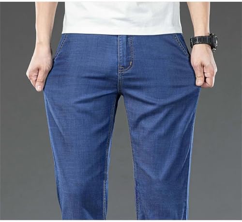 Men's Lightweight Jeans Thin Stretch Straight Denim Pants Loose iconic Business Casual Spring Summer Trousers