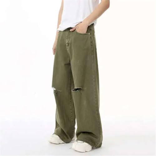 trending ! Men’s Vintage Fashion Jeans, Hole Design, Solid Color, Autumn Korean Straight Denim Pants