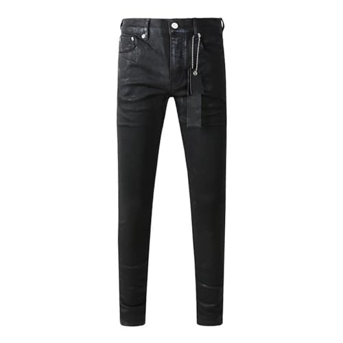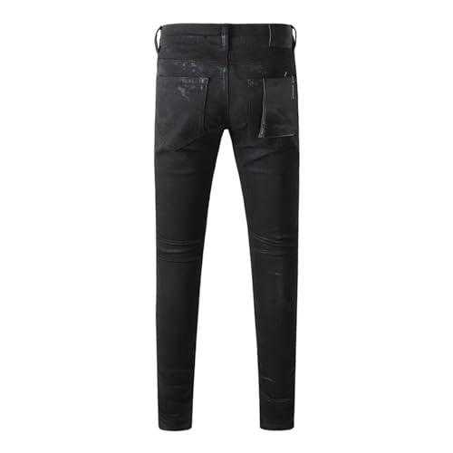 More information about Men High Street Distressed Stretch Skinny Button Fly Ripped Jeans Pants Black Straight Leg Denim Pants