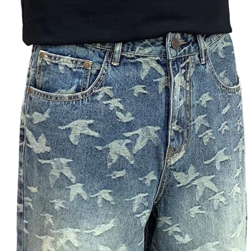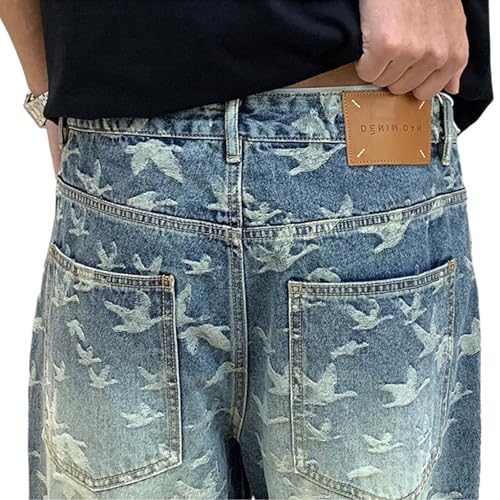 • Bird Print Design: Baggy jeans men feature a rare flying bird print, adding an artistic and bold touch to your casual streetwear outfit.