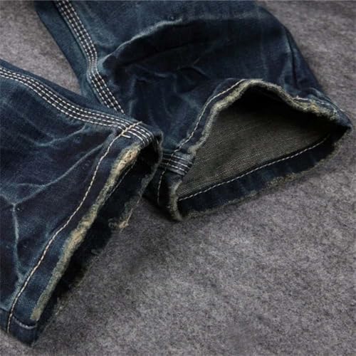 Hndudnff Men's Casual Ripped Jeans Slim Fit Distressed Straight High Street Long Denim Pants