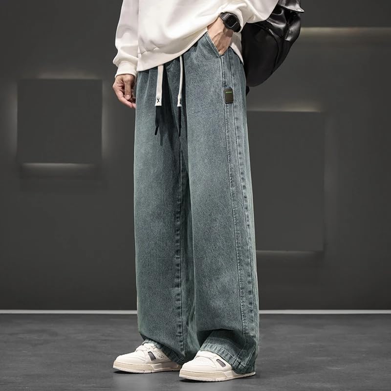 Autumn Wide Leg Jean Pants Men Trousers Solid Color Loose Casual Straight Pants