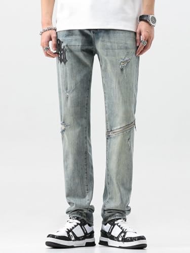 Fabric type: DenimCare instructions: Machine WashClosure type: ZipperRise style: No ShowThe Tailoring Craftsmanship Is Extraordinary, Simple, And Decent, Exuding Charm And Nobility. This Product Only Has One Pair Of Pants, And The Other Contents Of The Picture Are Not IncludedThis Pair Of Jeans Can Make You Easy To Control. No Matter What Style Of Top You Wear, It Is Easier To Match. This Pair Of Jeans Is Exquisitely Crafted, With Delicate Stitching, plush And FitPlease Refer To Our Size Chart Before Purchasing. Due To Differences In Computer Monitors And Lighting, The Picture May Not Reflect The Actual Color Of The Product. Thank You For Your UnderstandingPlease Wash At Low Temperature, Do Not Mix With Other Colorful Clothes, It Is Recommended To Wash With The Same Color. Due To Different Measurement Methods, There May Be An Error Of 1-3 CmThe Fashionable And Luxurious Elements Dazzle You On Any Occasion, Such As Dating, School, Party, Party, Etc. Our Craftsmanship Uses Comfortable, Soft, And Durable Materials To Make These Novel And Low-Key Jeans For You Perfect for everyday use. superior materials and excellent craftsmanship ensure long-lasting durability.