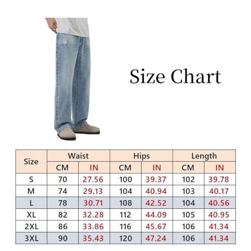 Fabric type: 100% DenimCare instructions: Machine WashOrigin: ImportedClosure type: ButtonFabric: Our men's non-stretch jeans are carefully made of high-quality blended fabrics, allowing you to enjoy confidence and comfort all day longDesign: The jeans are designed with mid-rise, holes, loose at the hips and thighs, and wide-leg design to bring you a plush wearing experienceOccasion: Our jeans are suitable for various outdoor activities such as parties, travel, dancing, hiking, running, jogging, fitness, etc.Matching: You can match them with sleeveless vests, hoodies, sweaters, sweatshirts, etc. Different matches can create different stylesSize: Please read the size chart provided in the picture carefully before placing an order. It is recommended to wash this blue loose jeans in cold water Perfect for everyday use. superior materials and excellent craftsmanship ensure long-lasting durability.