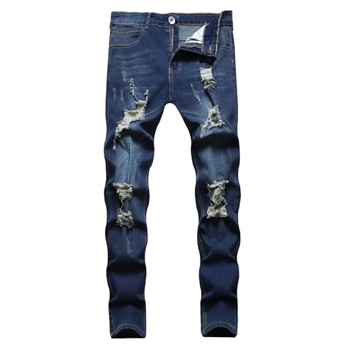 trending ! Men's Fashion Slim Fit Jeans Casual Denim Cargo Pants Jean Stretch Ripped Skinny Jeans with Cargo Pockets (X-Large,DarkBlue4)