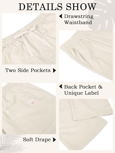 PLEPAN Men's Linen Pants Elastic Waist Drawstring Casual Summer Beach Lightweight Yoga Trousers Loose Fit