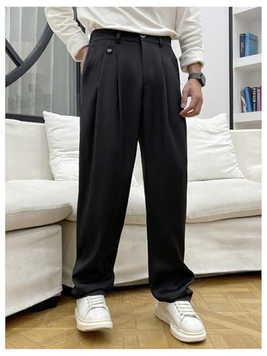 trending ! GORGLITTER Men's Zipper Fly Baggy Dress Pants Straight Leg Casual Pleated Trousers Streetwear