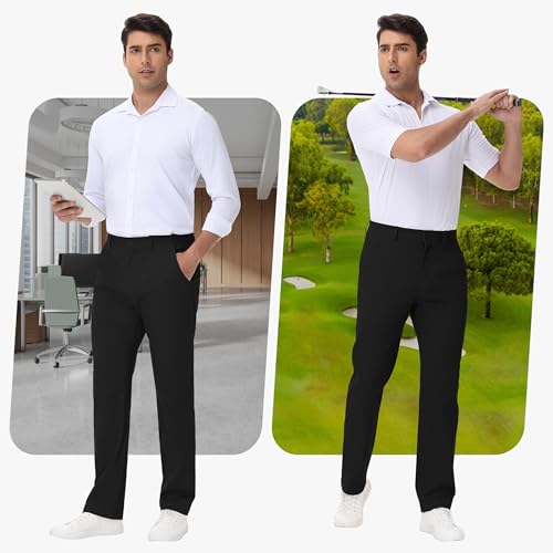 Fabric type: 97% Cotton, 3% Elastane(UPF50+/Quick Dry/4-Way Stretch)Care instructions: Machine WashOrigin: ImportedClosure type: Button【Anti-Ball Crushing】: The chino khaki pants feature ergonomic gussets, or extra fabric, sewn between the legs of the pants for more mobility and less tension gives the boys some room.【Coton Chino】: The type of fabric doesn't wrinkle easily, very stretchy and give your plenty of room to move without feeling tight or restrictive. We've worn them during the winter and well into the spring, and they've held up through it all—whether layered with a heavy parka or paired with a breezy t-shirt when the temps start to rise.【5 Pockets 】: 2 deep front pockets (left hidden zipper pocket) + 2 button back pockets, you'll have plenty of space to store your belongings. Keep your keys, cards, and other essentials secure when you’re on the go with this hidden zip pocket.【Flat Front & Button Closure】: With a clean, flat front, they bring a relaxed vibe that works beyond the office. Built with Curved Waistband, The foundation of our great fit gets rid of excess fabric by following the natural shape of your hips.【Versatile Pants】: We can imagine how one might think they're only useful as a workwear staple, but make no mistake—they fit the bill for regular weekend outings, playing golf, too. Whether paired with a and or a and t-shirt sneakers polo plush dress shoes. Perfect for everyday use. superior materials and excellent craftsmanship ensure long-lasting durability.