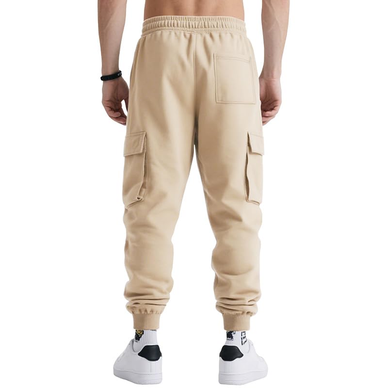 Men Autumn/Winter Solid Color Fashion Work Pants Elastic Waist Drawstring Sweatpants with Multi Pockets