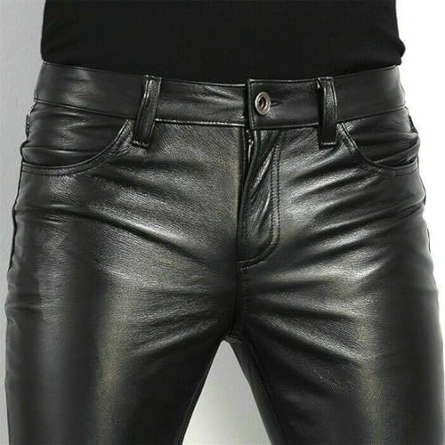 Men's Skinny Straight Leg Tapered Faux Leather Motorcycle Biker Pants