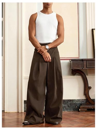 trending ! Men's Wide Leg Pants Pleated Baggy Dress Pants Casual Trousers with Pockets Streetwear Slacks for Men