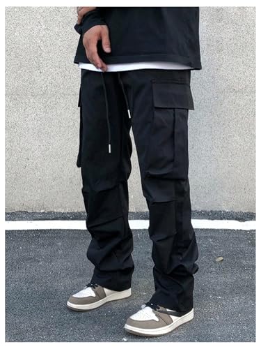 Fabric type: 100% PolyesterCare instructions: Machine WashOrigin: ImportedClosure type: Pull OnFabric: Soft, comfortable and skin-friendlyFeatures: Drawstring waist, solid color, multiple pockets are practical for storing small items like keys, phone, or wallet while on the goOccasion: Great to wear for meeting with friends, dating, night out, street, casual wear, and any occasion in your daily lifePair: Pair these cargo pants with a simple t-shirt or hoodie and sneakers for a comfortable and sophisticated outfit. You can add a baseball cap or sunglasses for an extra touch of stylePlease refer to size measurement before ordering ( The size chart is product measurement, not body measurement) Perfect for everyday use. superior materials and excellent craftsmanship ensure long-lasting durability.