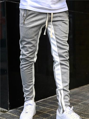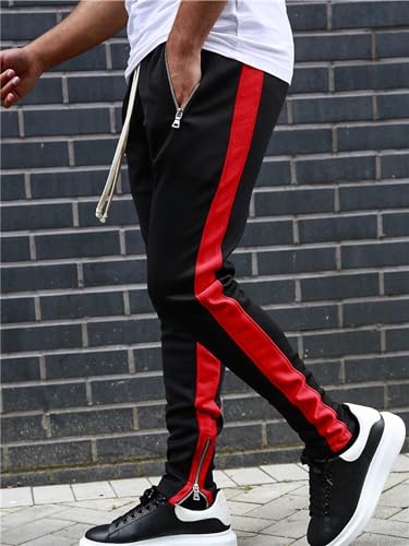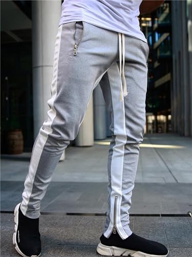 Mens Active Regular Fit Casual Sweatpants Stripe with Ankle Zippers iconic Slim Fit Side Stripe Track Pants