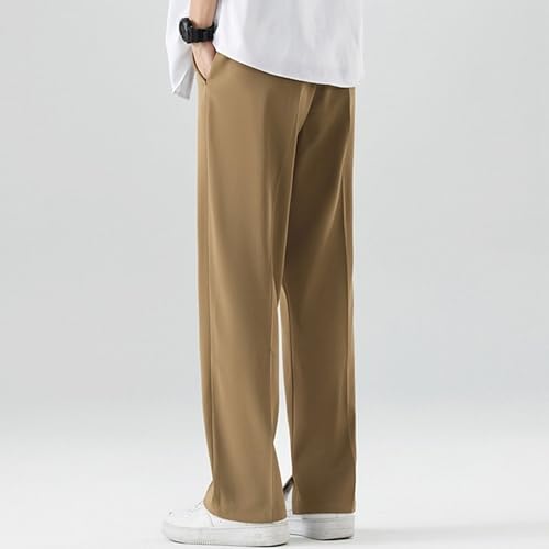 Men Summer Straight Ice Silk Trousers Comfort Stretch Waist Ice Silk Pants Elegant Suit Slim Men's Trouser