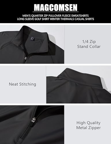 MAGCOMSEN Men's Quarter Zip Pullover Long Sleeve Sweatshirts Fleece Lined Golf Pullover Thermal Gym Workout Tops