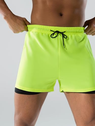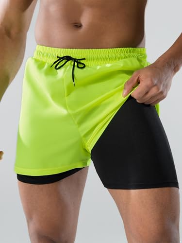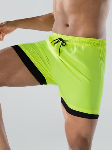 trending ! Men Beach Pool Party Solid Color Swim Shorts Double Layers Drawstrings Swim Trunks Beachwear Bathing Suit