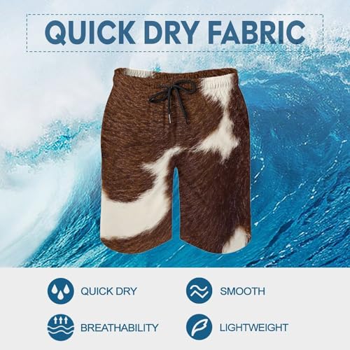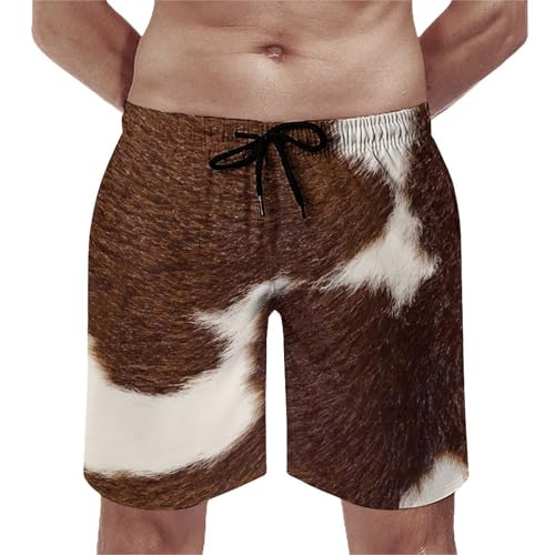 Brown and White Cow Hide Men's Shorts Casual iconic Fit Drawstring Summer Beach Shorts with Pockets