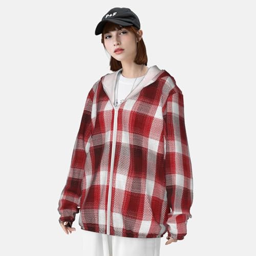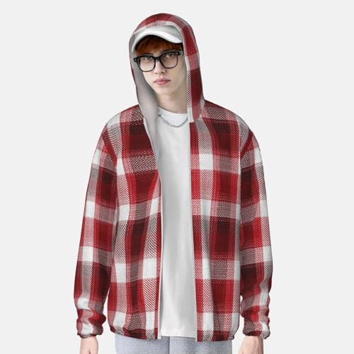 Fabric type: 100% PolyesterClosure type: ZipperNeck style: Hooded NeckSleeve type: Long SleeveBreathable & Quick-Dry: Our summer long sleeve Red plaid sun protection shirts are made from quick-dry and breathable elastic material that dries quickly. It breathes easily to vent excess heat and moisture to keep you cool, dry, and moving comfortably.UV Protection: Our Red plaid long sleeve sun shirts features cutting-edge UPF 50+ technology, effectively blocking UV rays to ensure robust sun protection during your outdoor adventures. Designed with a hood to protect the neck, and other sun-exposed areas. Ideal for extended outdoor activitiesLightweight & Comfort: The ultralight Red plaid fishing shirt is designed for a natural fit, the ultralight fabric and ergonomic flat-lock seam construction reduce chafing. Our fishing shirts moves effortlessly with your body, ensuring all-day comfort.Designed for Outdoor Sports: Whether you're fishing, hiking, running, swimming, rash guard, or simply enjoying the beauty of nature, our sunproof hoodie is the perfect companion for all your activities; Seamlessly blending style with protection, it meets your outdoor adventure needs with perfection.Versatile Style: This men's sun protection shirt has a simple and elegant design, which is not only suitable for matching with swimsuits and sportswear, but also can match up with a variety of pants and shoes. Now you can choose a rare sun protection clothing for your family, friends or yourself to protect the skin and show your fashion sense at the same time. Perfect for everyday use. superior materials and excellent craftsmanship ensure long-lasting durability.