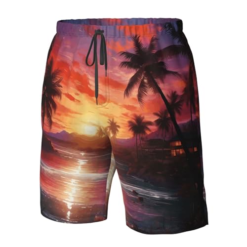 Men's Swim Trunks prompt Dry Board Shorts Mens Bathing Suit Swimsuits Colorful Tropical Sunset Beach Shorts with Pockets