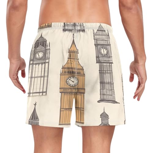 trending ! London Big Ben Men's Swim Trunks with Liner hasty Dry Beach Shorts Swimwear Bathing Suit S-XXL