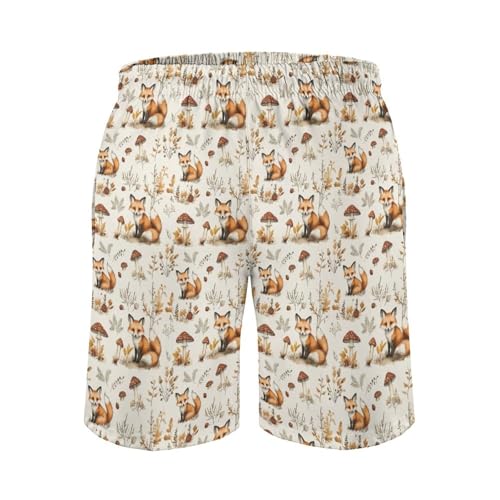 • hasty-Dry and Supportive Design: Designed with a mesh lining for support and an adjustable drawstring waist, these Cute Mushroom Fox Print board shorts for men swim combine comfort with function. Ideal for those seeking mens quick dry shorts that stay in place while staying cool