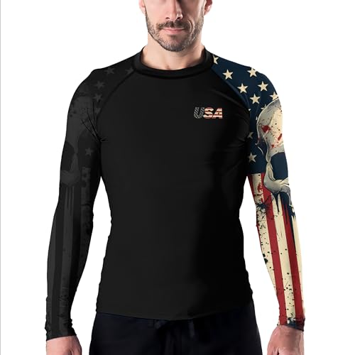 trending ! Patriot Men's Long Sleeve Rash Guard – Performance Compression Shirt for MMA, Grappling, BJJ