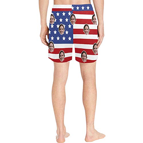 Custom Funny Swim Shorts with Faces American Flag Customized Gifts Mens Swim Trunks for Men