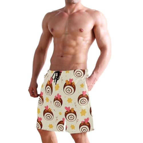 Dessert Swiss Roll Star Yellow Mens Swim Trunks prompt Dry Beach Shorts with Pocket S 2302196