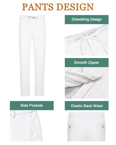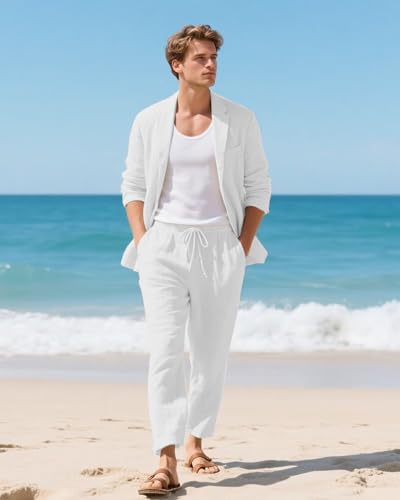 More information about Retro Linen Mens Suit 2 Piece Slim Fit Sets Tuxedo Linen Jacket Drawstring Pant Summer Blazer Set Prom Wedding Suits for Men