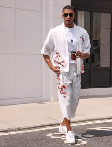 Fabric type: 96% polyester 4%elastaneCare instructions: Hand Wash OnlyOrigin: ImportedExquisite Cultural Fusion Design: This Japanese kimono-inspired set combines traditional Chinese motifs (crane, pine, sun, clouds, and phrases) with up-to-date streetwear elements. The open-front cardigan features 3/4 sleeves and artistic prints for a bold statement, while the matching pants showcase medium-rise styling with side pockets. Perfect for creating an eye-catching ethnic-chic look at festivals, concerts, or casual outingsPremium Skin-Friendly Fabric: Japanese Kimono Set for Men is made of 96% polyester + 4% elastane, this lightweight yet durable material ensures exceptional softness and zero skin irritation. The non-stretch, pill-resistant fabric maintains shape through repeated wear while providing optimal breathability β ideal for all-day comfort during summer festivals or relaxed indoor gatheringsAdjustable Comfort Fit: Make it a statement piece in your wardrobe with our Japanese kimono - open front printed cardigan Chinese style top and pants. The elastic waistband with adjustable drawstrings, can cinch the waist and ensure the best fit to the body. Loose-fit pants and flowy cardigan sleeves cleverly conceal deficiency of the stature, suitable for most people. Side pockets add practicality to the artistic designVersatile Occasions: Open Front Printed Kimono Cardigan easily transition effortlessly between music festivals, themed parties, yoga sessions, and daily errands. This Men's 2 piece fashion casual summer tops shorts outfit doubles as stage performance attire or loungewear, blending cultural aesthetics with modern functionality. Pair with sandals for beach events or layer over basics for urban street styleIncludes Size and Style: Package includes 1 printed cardigan + 1 matching pant (sold as set). Available in multiple warm-toned color options (as pictured) across sizes S-XXL. If you wanna be fashion-forward, this Mens kimono cardigan suits is a good addition for your wardrobe because they can show your confidence and grace Perfect for everyday use. supreme materials and excellent craftsmanship ensure long-lasting durability.