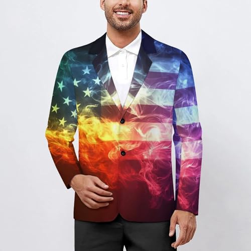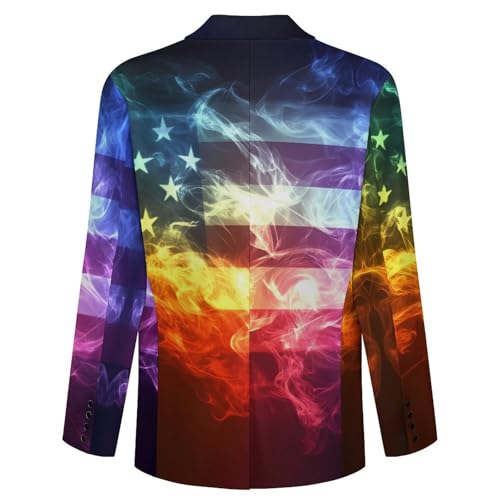 U.S. Gay LGBTQ Flag Colorful Mens Suit Jacket Lapel Blazers V Neck Button Business Coat Tuxedo for Wedding Party