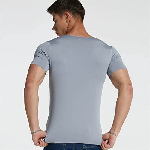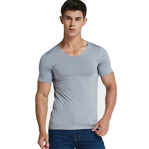 trending ! Men's V-Neck Undershirts Man Ice Silk Seamless Short Sleeves Basic Shirts Summer Sexy Fitness Body Building Underwear