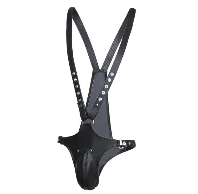 premium Materials: Punk chastity belt is made of high quality faux leather , soft and flexible, durable and plush for wear.Adjustable Size: Shoulder belt length Adjustable as picture shown. The leather thong is perforated, making it suitable for most men to wear. When you adjust it to fit your size, you will find that it will show your figure and make you look very charming.Innovative front binding structure with removable components to meet diversified needs; the strap adopts multi-position buckle design to fit different waist circumference. The leather-like material is flexible and fits well, taking into account the pleasure of display and secret bondage to create a personalized experience.Occasions: Matte faux leather and metal ring buckle collide to create a hardcore fashion sense, and the thong cut reinforces the waist and hip curves. Dark color scheme with industrial sense chain elements breaks through the traditional underwear design, suitable for theme parties, art shoots and other pioneering scenes. SM BDSM sex restraints is perfect for men who wants to be focused in night club or bar. Perfect for Halloween, nightclub, carnival, cosplay, slave play, sex game, bar, masquerade, punk rave, music festival, concert,dating,club and other events. Special gift for lover, husband, friends, birthday, anniversary, Valentine's Day, Christmas.Spice Up Your Love Life: Use the sex adult toys kit to add some pleasure to your bedroom, try new positions and new scenarios that will make your lover crazy, experience the thrill of bondage and explore your deepest fetish fantasies.This cock cage belt features an ergonomic curved design to maximize restraint and comfort. The men's chastity device fits well and is easy to put on and take off, which also means you can take it out with you easily.Service: If you find the product damaged or unsatisfied after receiving it, you can always provide return or exchange service. If you have any questions, please feel free to ask us, we will give you a satisfactory answer! Perfect for everyday use. High quality materials and excellent craftsmanship ensure long-lasting durability.